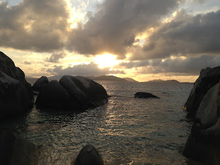 We had plans to go to a beach but needed food first. Nothing was open... Nothing. We ended up having to drive back to the baths to find food. We decided to check out a close beach there and met some really cool people from Delaware. They still wanted to talk to us after my nervous Waynes world reference. They love to come to the baths at night with a radio and flashlights and scope the caves. They pointed out a cool rock jump, which I did not partake in. If we had better gear or even shoes that have any grip, I might be convinced to have a cave party. We don't even have a flashlight much less a waterproof one. Maybe next time.